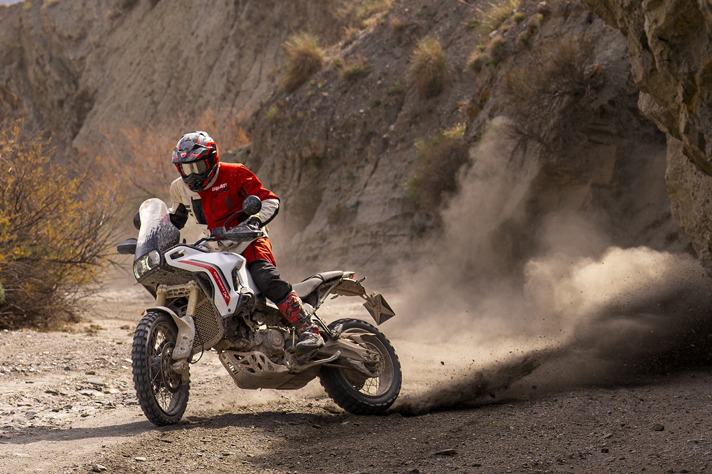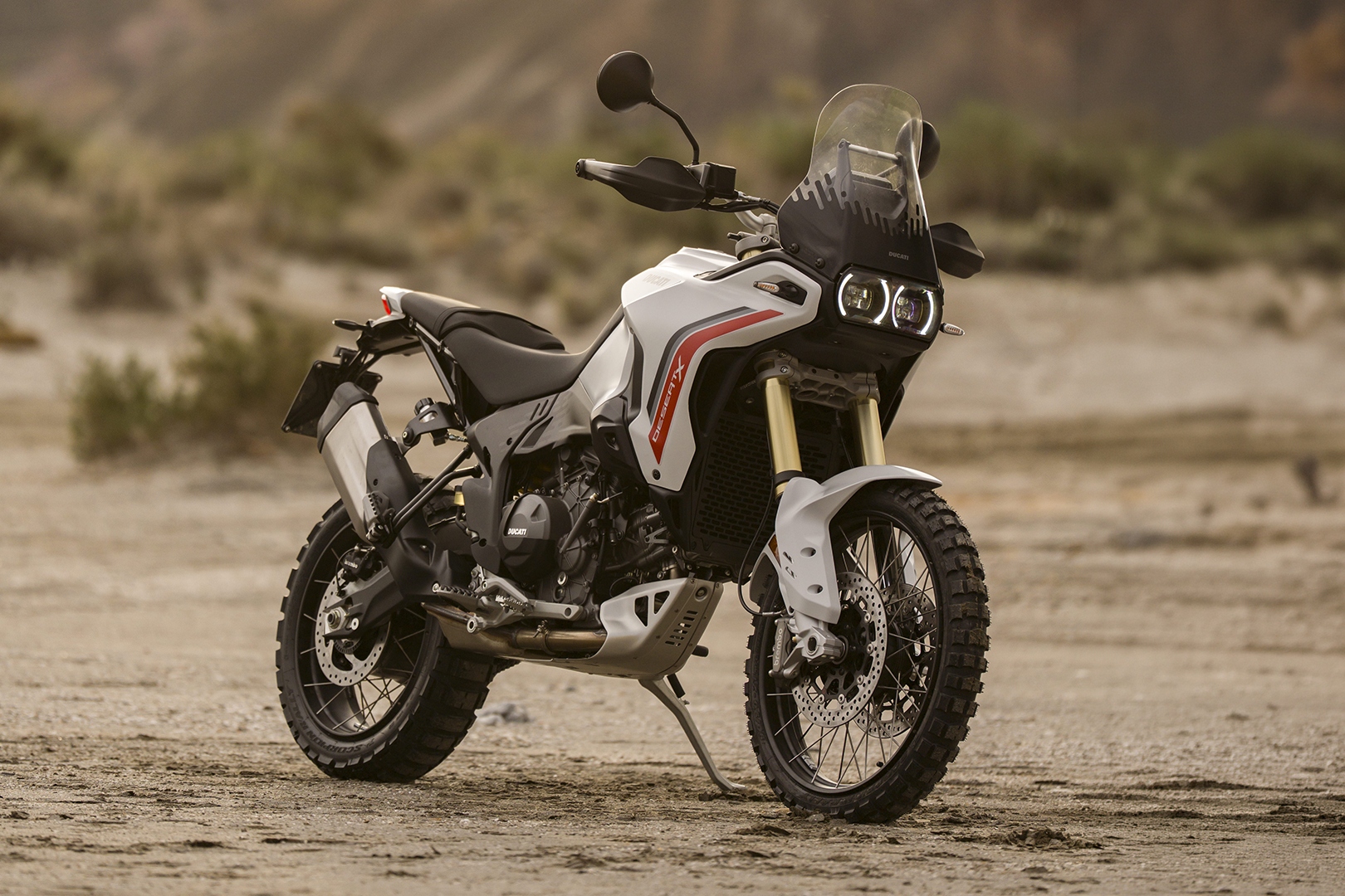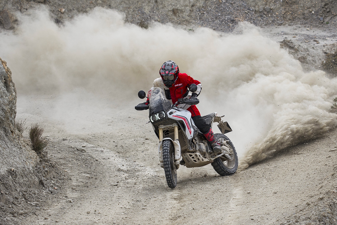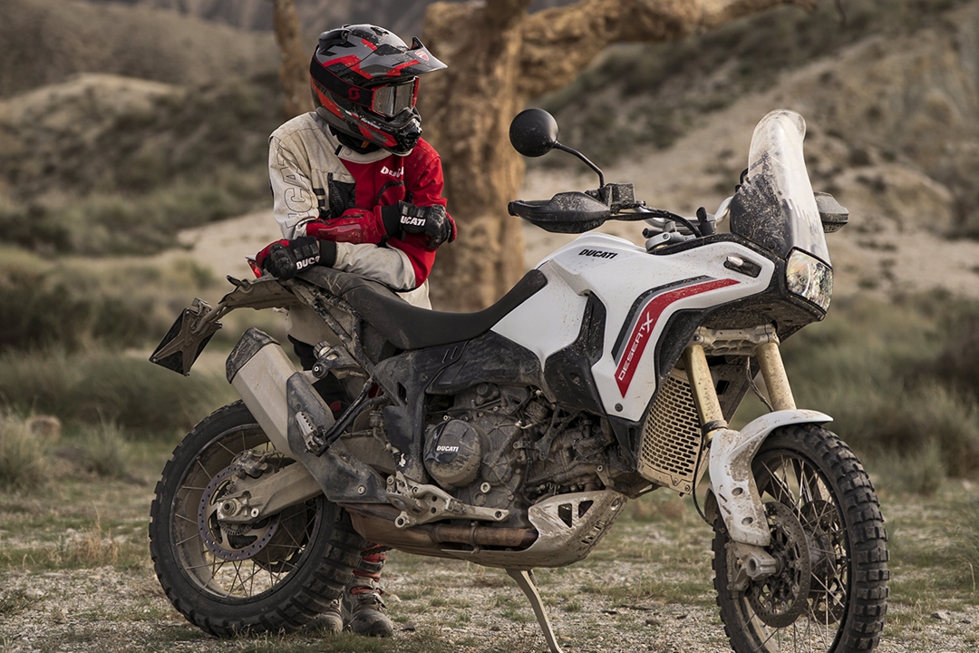 Born Unbound - dieser Claim passt zur neuen Ducati DesertX V2 wie Staub auf Stollenreifen. Denn dieses Motorrad ist nicht als „Adventure“ für den Parkplatz entstanden, sondern als konsequent entwickeltes Werkzeug für echte Pisten, lose Böden und lange Tage im Gelände. Intensive Erprobung abseits befestigter Straßen hat jede Evolution geprägt: natürlicheres Handling, höhere Alltagstauglichkeit in jeder Situation und ein noch ausgeprägterer Offroad-Charakter - ohne die Präzision und Fahrfreude auf Asphalt aufzugeben.