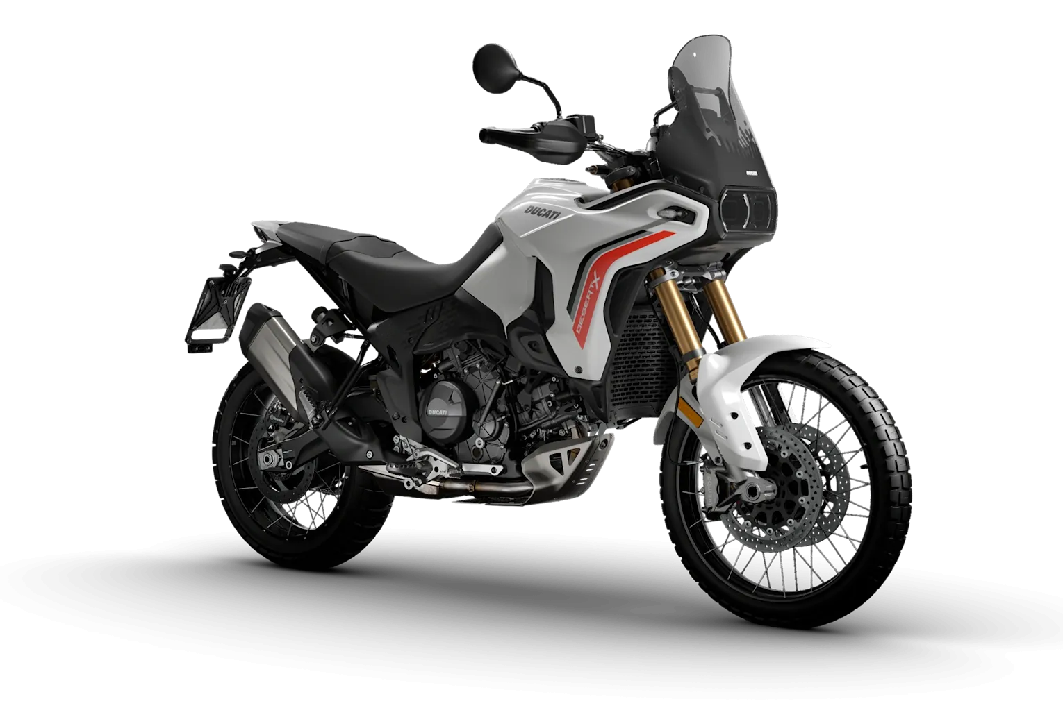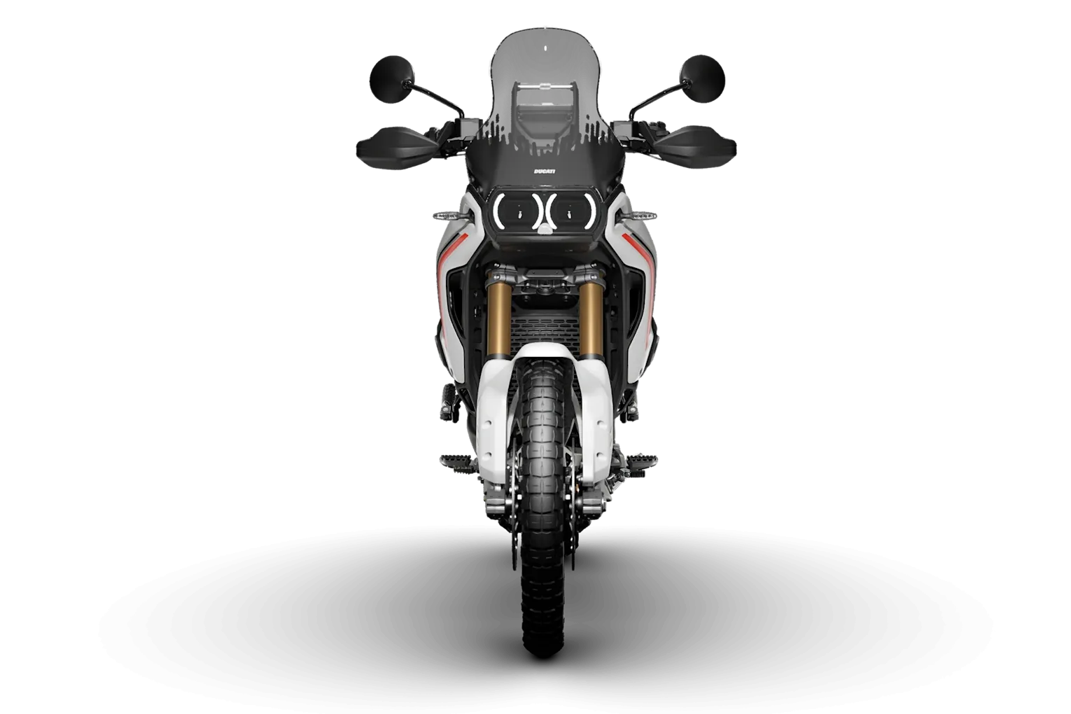 In der neuen Farbgebung Matt Star White Silk zeigt sich die DesertX bewusst technisch und funktional: Das matte Weiß betont die robusten Flächen, die klare Linienführung und die kompromisslose „Form folgt Funktion“-Philosophie. Das Design ist kein Selbstzweck, sondern Ergebnis aus dem Zusammenspiel von Centro Stile Ducati und Forschung & Entwicklung - auf Widerstandsfähigkeit, Schutz und Kontrolle ausgelegt. Genau deshalb wirkt die DesertX auf den ersten Blick solide, zuverlässig und bereit für Terrain, das andere Motorräder meidet.