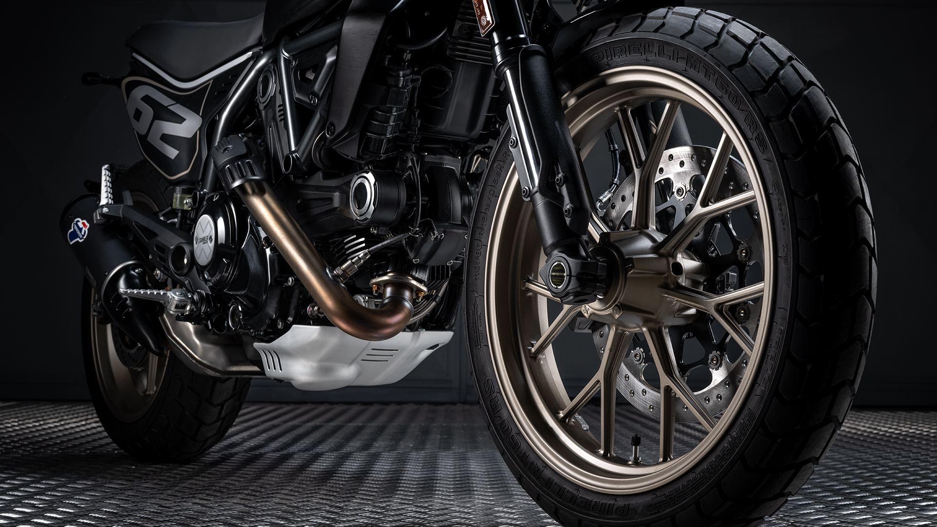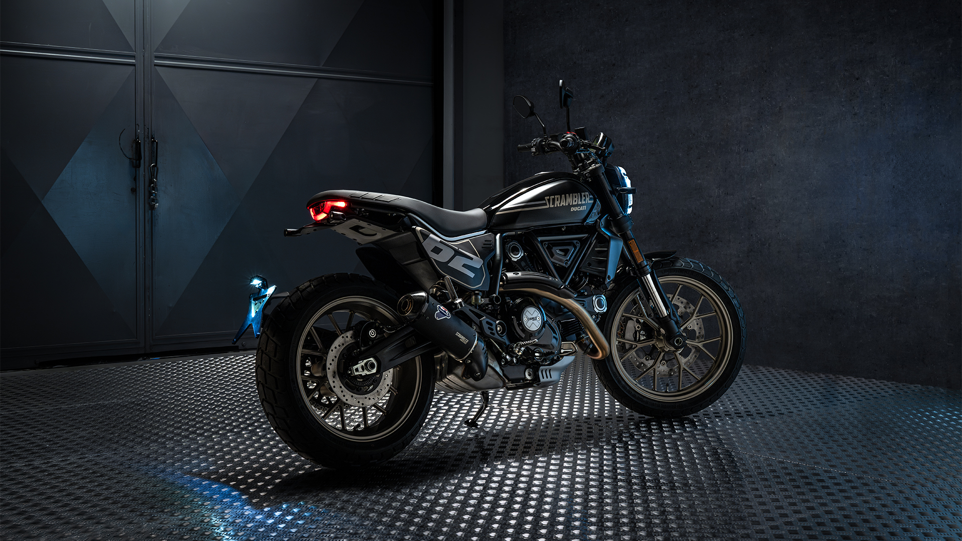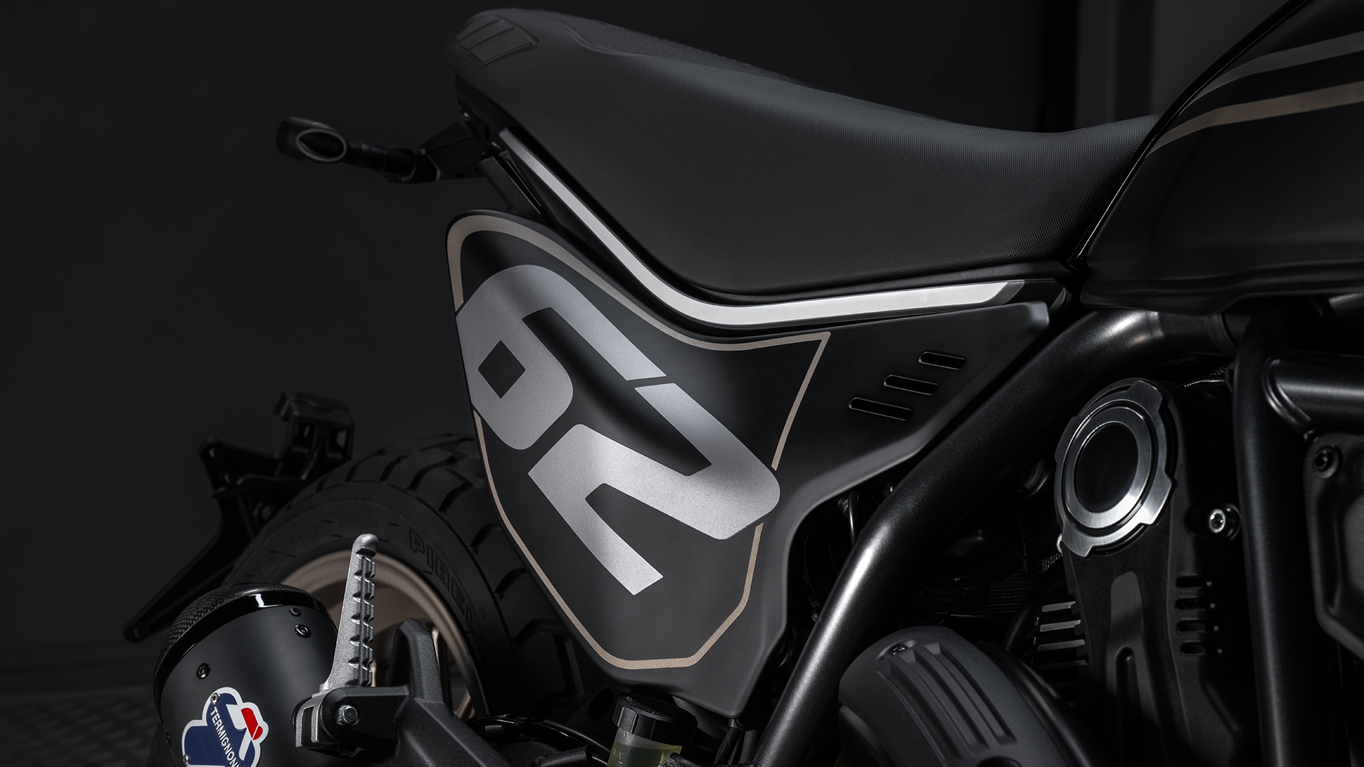 Gerade die Details machen diese Version so stimmig. Der Termignoni-Schalldämpfer, die Ducati Performance LED-Blinker, der sportliche Frontkotflügel, der Motorschutz (Sump Guard) und die spezifische Lackierung sind nicht zufällig gesetzt, sondern Teil eines Gesamtkonzepts, das den Street-Tracker-Look konsequent zu Ende denkt. Gleichzeitig bleibt die Full Throttle alltagstauglich: zwei Sitzplätze, praktikabler Tank, moderne Beleuchtung und ein Cockpit, das Informationen klar darstellt.